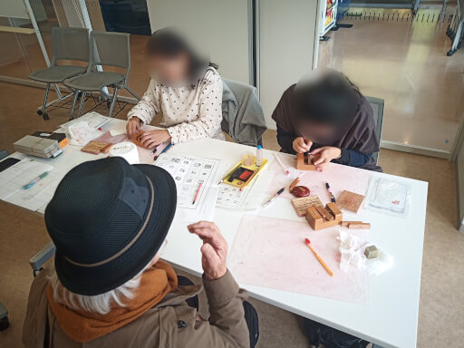 イベント情報2025/10/23(木)の篆刻教室の様子をお知らせします。会場は、S&Dたまぐーセンターの4階・ミ―ティングルームAでした。