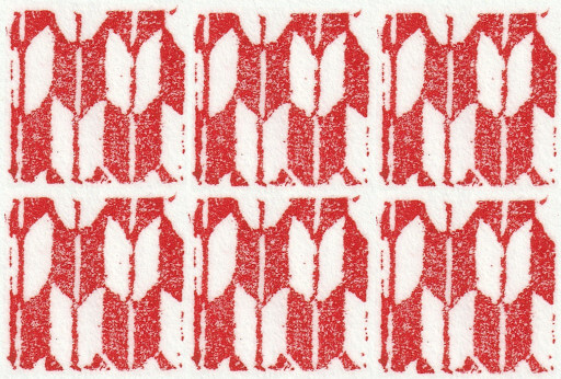 矢絣(やがすり)模様は、9/25に作業を始めて今回完成しました。一つの印影だけだと面白みが伝わりにくいかもしれません。唐草模様の時もそうでしたが、このような柄模様の印はいくつか並べて捺してみると面白みが出てきます。こんな感じです。