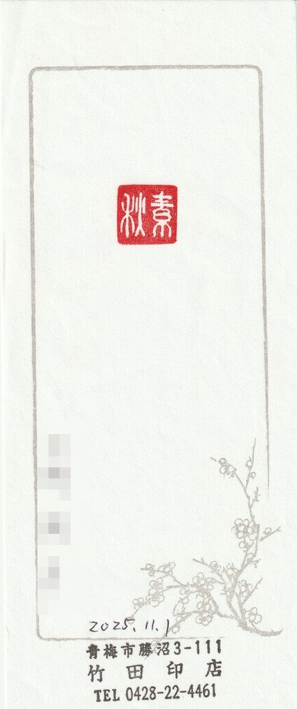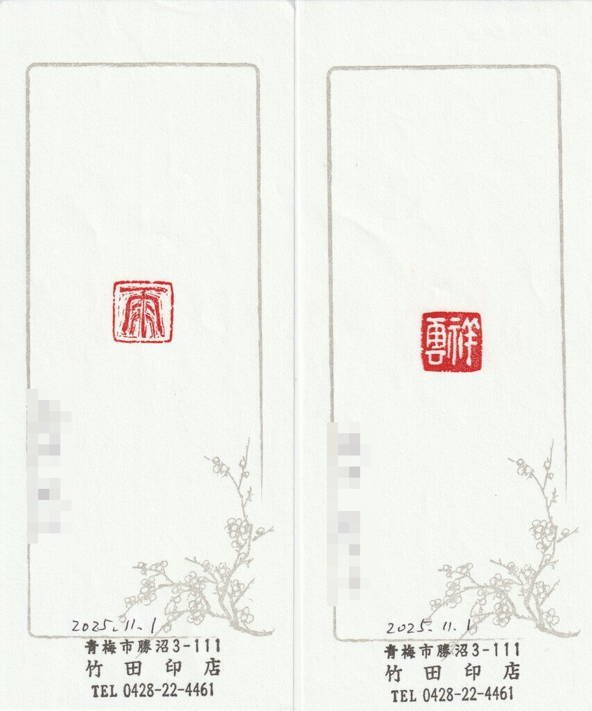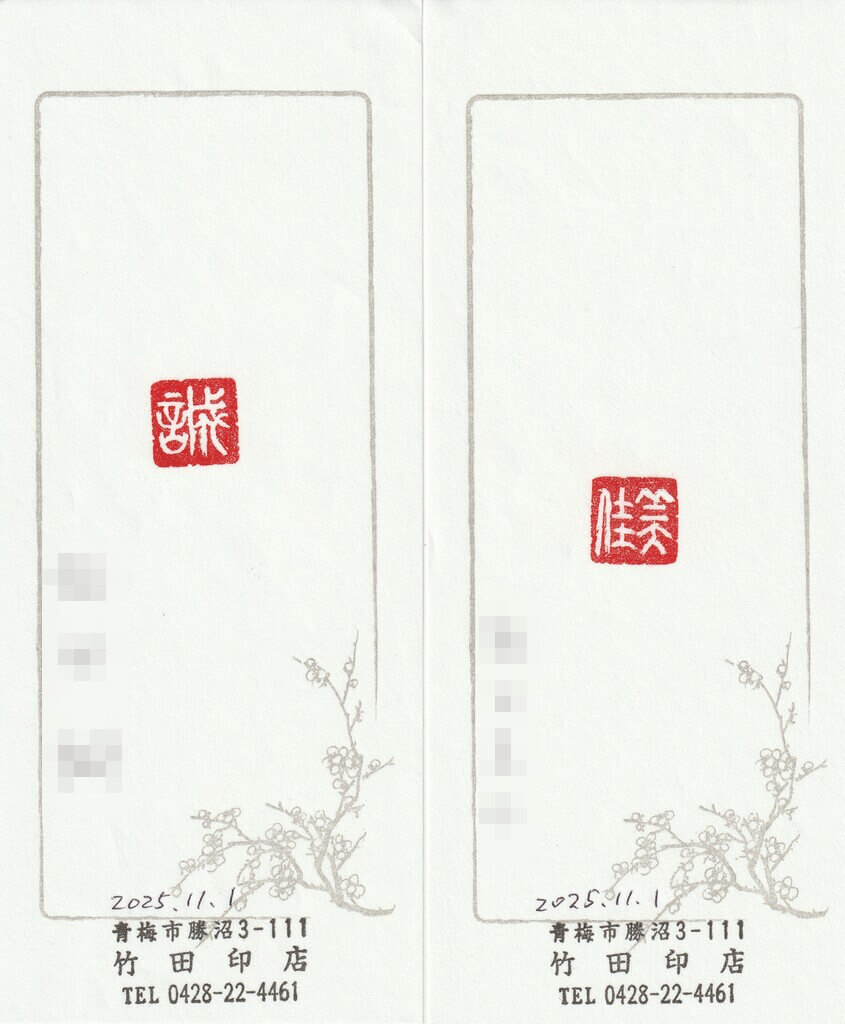 今日出来上がった作品はこちらです。(フルネームの氏名印は除きました)