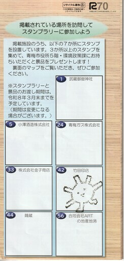 3か所以上のスタンプを集めて、青梅市役所5階・環境政策課に行くと折りたたみエコバック、タンブラー、クリアボトルなどの景品がもらえます!