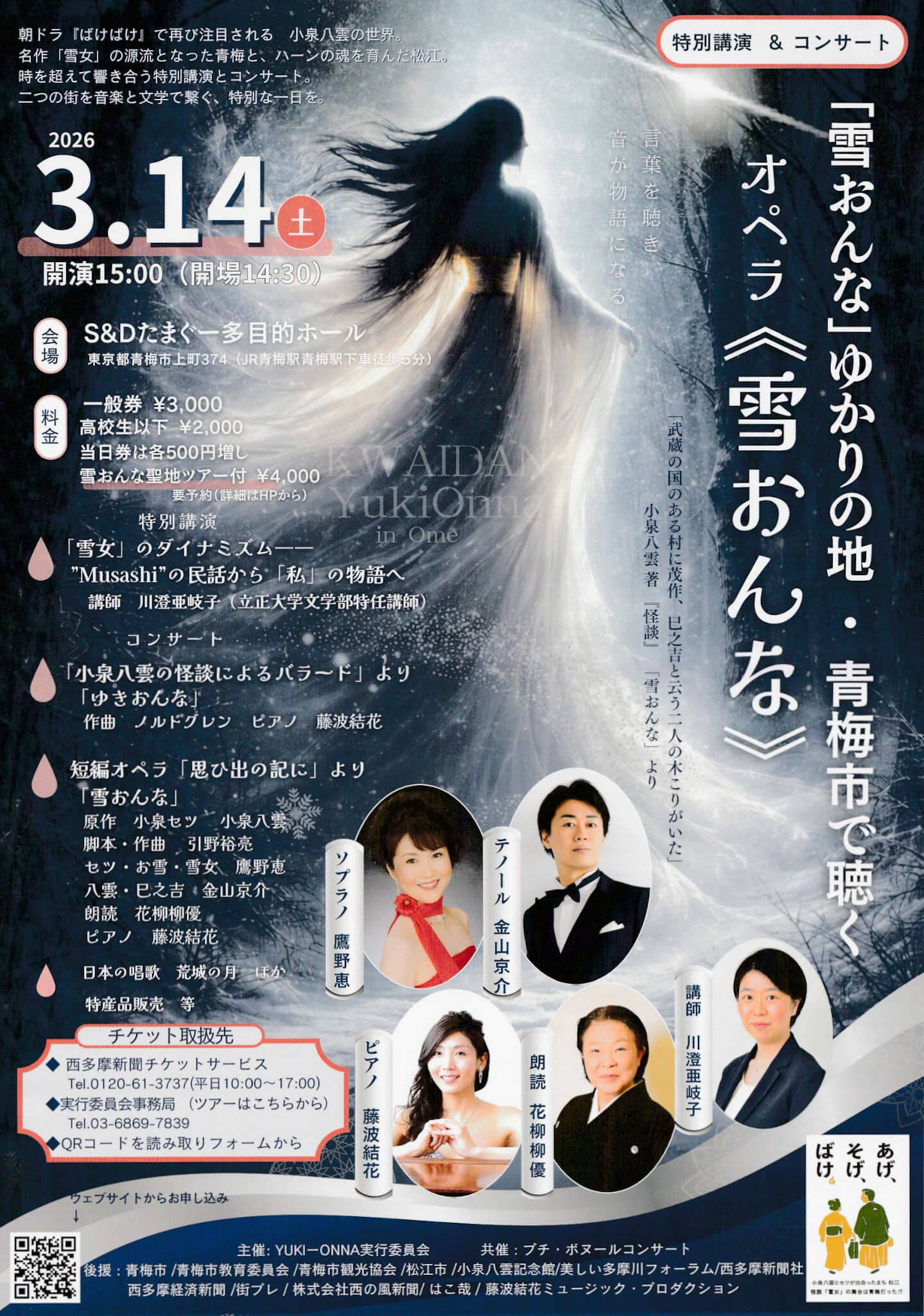 朝ドラ「ばけばけ』で注目される 小泉八雲の世界名作「雪女」の源流となった青梅と、ハーンの魂を育んだ松江。 時を超えて響き合う特別講演とコンサートです。このコンサートでピアノを演奏される藤波結花さんからのお知らせです。